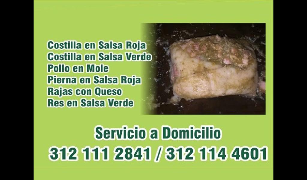 Tamales jarochos el tío Costilla en salsa roja Costilla en salsa verde Pollo en mole Pierna en salsa roja Rajas con queso Res en salsa verde