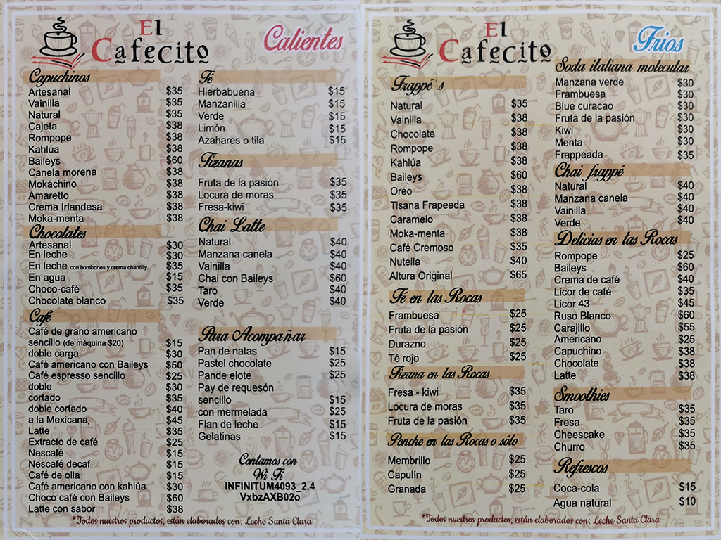 -Frappes naturales, vainilla, rompope, kahlúa, baileys,tisana, moka, nutella