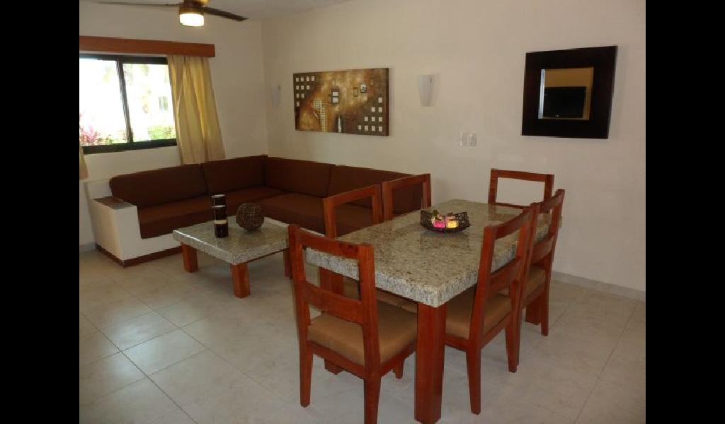 VILLAS cuentan con 1 recamara king size con terraza, 1 recamara con 2 camas individuales, cocina integral (cafetera, microondas,parrilla, campana, refrigerador, bateria de cocina, loza) sala y comedor, ba駉 con amenidades, Secadora para cabello, TV LCD con cable, tel閒ono y aire acondicionado en toda la villa.